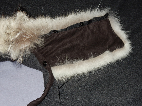 Sometimes a purposeful asymmetry in the fur can add interest (as shown on the blue fox collar left, that replaced a fake fur collar on a purchased jacket). |