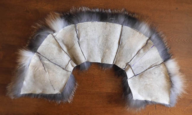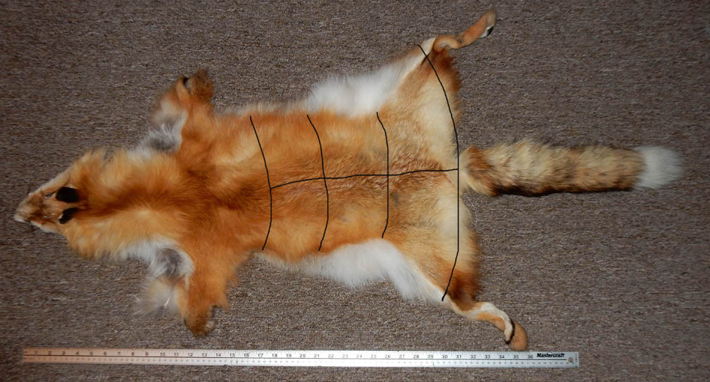 the black lines are approximate cut lines for one Quaker Collar on this opened fox pelt. The underbelly fur is different so is probably not going to be used in this collar.