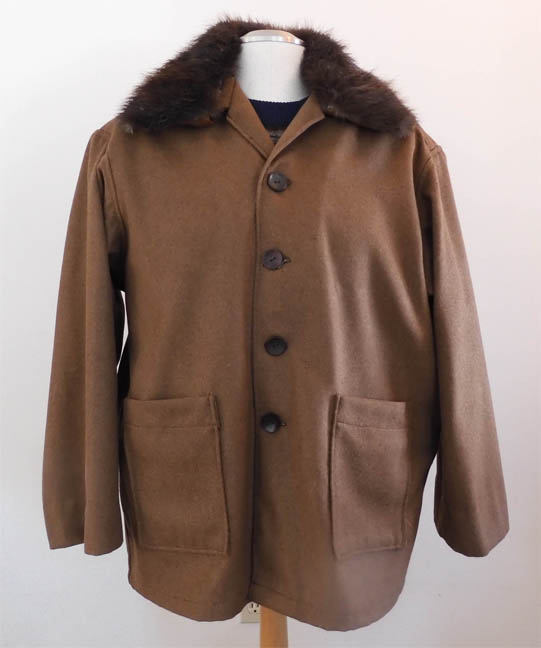 Particularly on men's jackets, I find the slipover fur collar useful. One constructs the jacket with a collar in a plain style first. Or one purchases such a jacket. The fur collar is made by cutting the fur slightly larger than the existing collar and then adding a facing to it by sewing the facing to the back edge and each end, allowing enough extra undercollar fabric to be able to sew it to the inside at the front. Attach bias tape or wide twill tape to the front edge of the fur collar and hand tack it to the inside. The finished collar is then an open envelope and is slipped over the jacket collar. I typically sew snaps to the coat collar edge and the front edge of the fur collar. This is a "shacket" with a slipover beaver fur collar. Many men's collars are made of shorter haired furs. This shacket can be easily hand washed with the collar removed. |