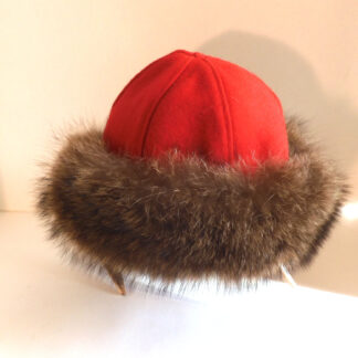 Six Point Black Wool Hat with Cross Fox Brim, Medium